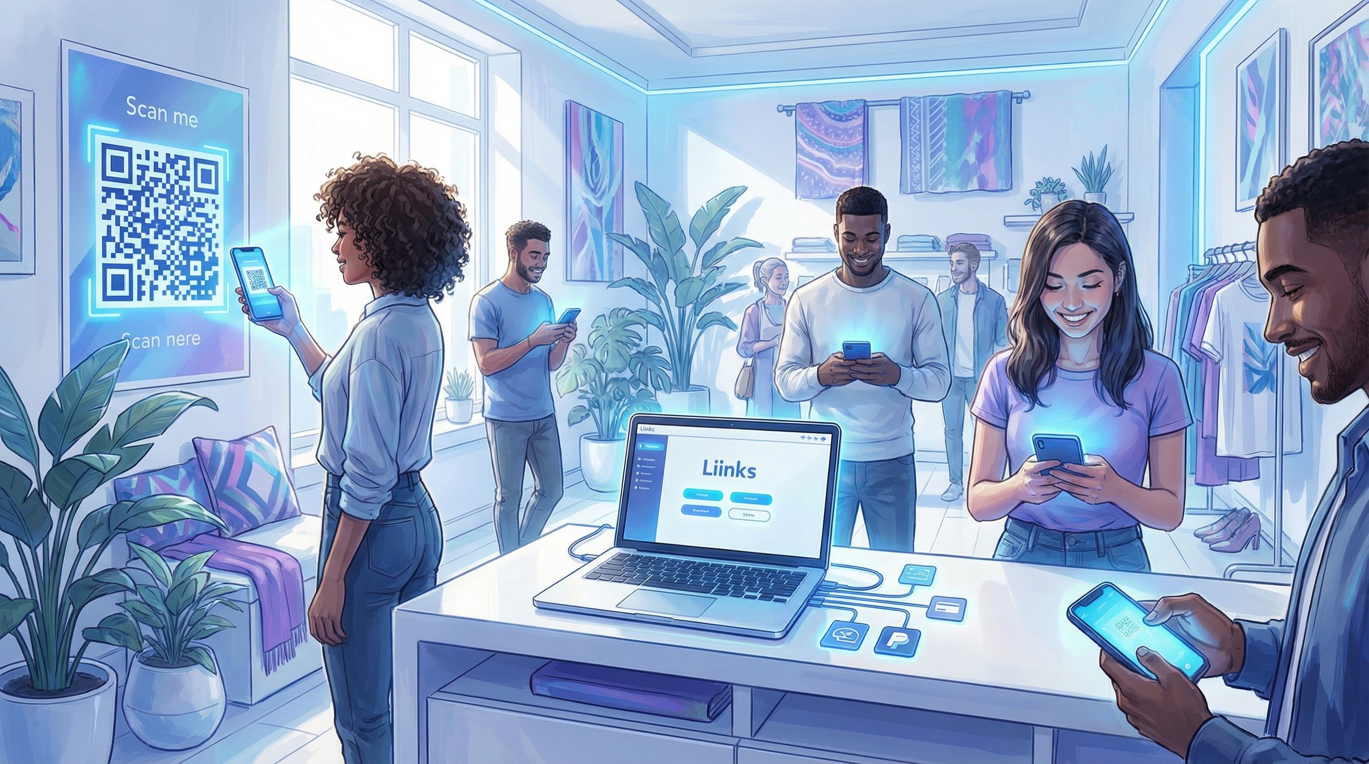 - Connect offline to online. Posters, cards, and QR codes all point to the same Liinks page.