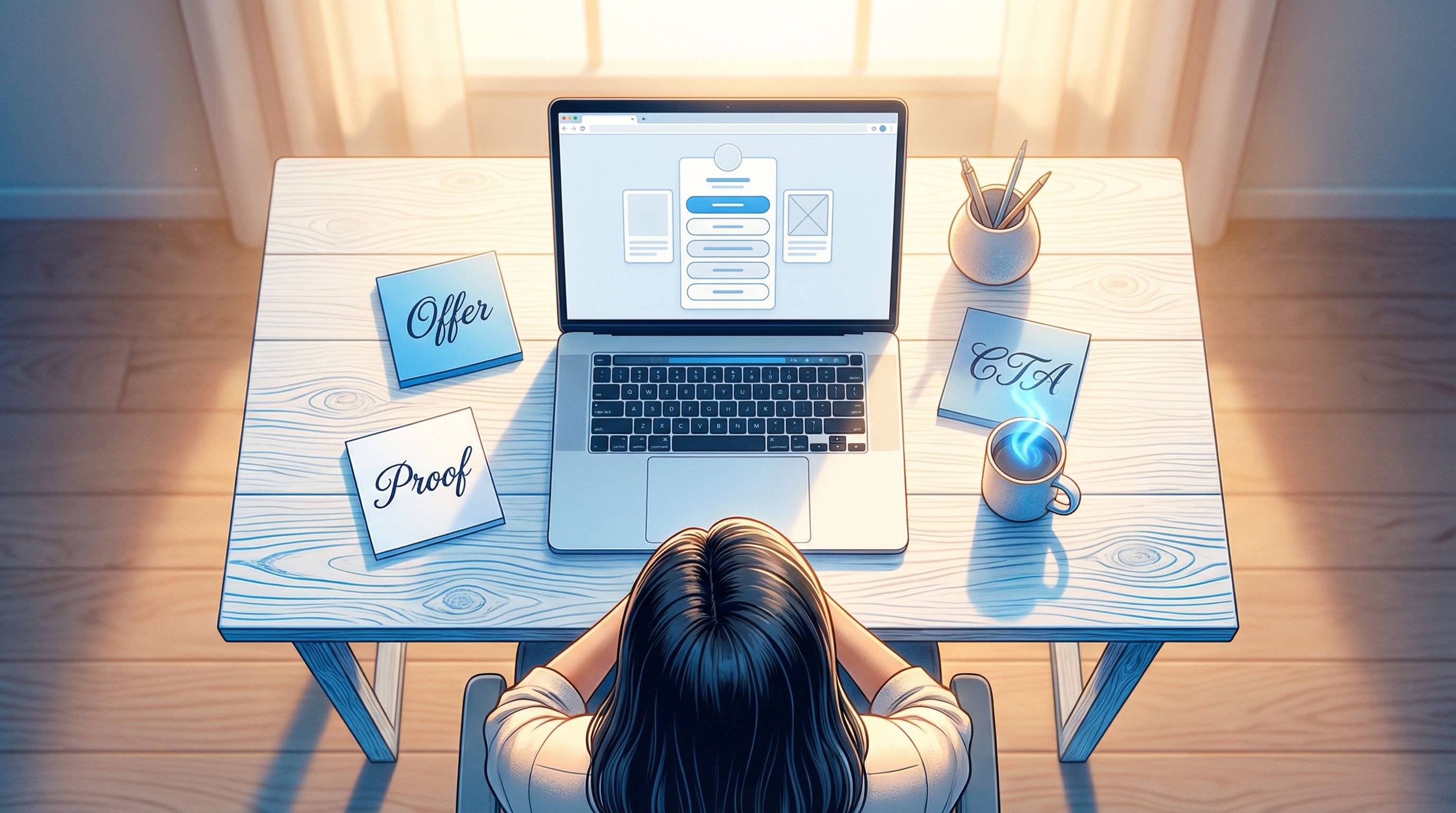 - Map a simple 3-stage funnel (curious → considering → ready) onto one clean page
